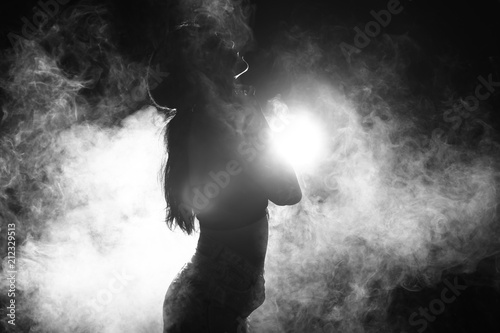Silhouette of Attractive Body Shape with Fluttering Curl Hair in Smoke