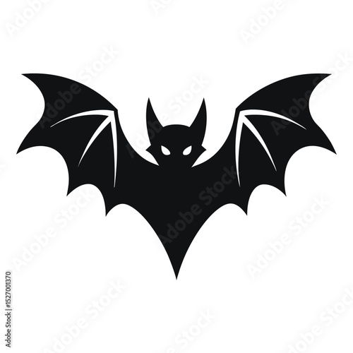 Silhouette of Bat with Spread Wings, Glowing Eyes Halloween Illustration Symbol