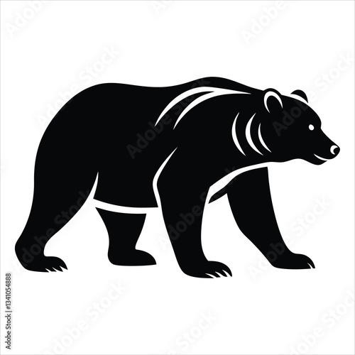 silhouette of Bear Silhouette Vector A bold and striking vector silhouette of a bear, isolated on a white background. The bear’s strong form is defined by sharp, minimalist lines, creating a simple