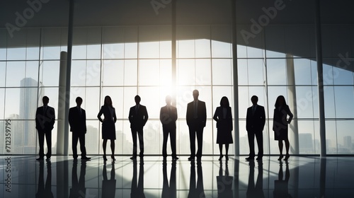 Silhouette of Business People Posing by Window. Neural network AI generated art Neural network AI generated art