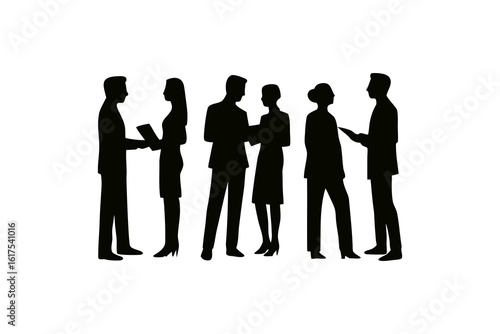 silhouette, business, professional, team, collaboration, communication, corporate, office, meeting, discussion, strategy, planning, agreements, success, leadership, man, woman, suit, career, employment, work, human, standing, together, enterprise, presentation, document, report, analysis, corporate culture, white background, teamwork, partnership, staff, personnel, finance, management, organisation, project