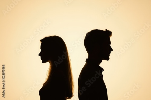 silhouette, couple, looking, opposite, direction, neutral, background, marriage, clash, emotional, distance, potential, separation, divorce, human relationships, tension, conflict, intimacy, heartache, visual, composition, contrast, imagery, drama, storytelling, loneliness, disconnect, sombre, reflections, nuance, depth, sorrowful, poignant, art, human, interaction, evocative, sentiment, negative, space, narrative, metaphor, dynamic, essence, love