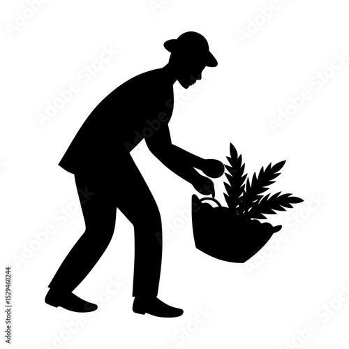 silhouette, farmer, harvesting, crop, agriculture, rural, farming, field, countryside, harvest, wheat, grain, basket, plant, nature, cultivation, growth, organic, food, produce, farm, person, man, hat, labor, scenery, landscape, art, illustration, graphic, design, vector, icon, symbol, pictogram, simple, minimalist, outline, drawing, clip art