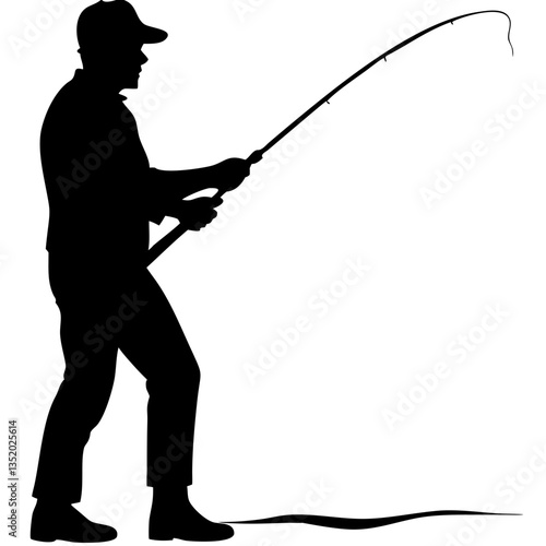 Silhouette of Fisherman with Fishing Rod Vector for Leisure and Outdoor Activities