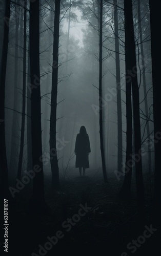 Silhouette of person in a misty forest
