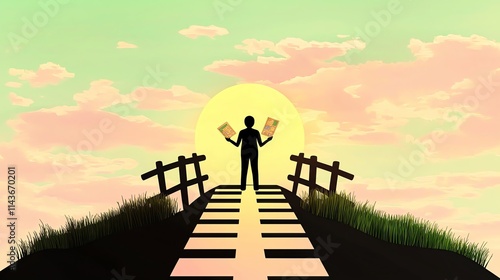 silhouette, person, path, sunset, people, journey, freedom, decision, exploration, adventure, landscape, choose, joy, mean, design, long, bond, trust, share, heal, travel, love, railroad, way, nature