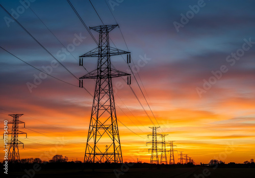 electricity, power, energy, electric, sky, sunset, pylon, tower, line, voltage, electrical, cable, high, industry, transmission, wire, technology, industrial, silhouette, blue, supply, steel, line, sun, metal