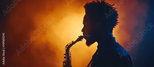 saxophone, music, jazz, musician, silhouette, profile, performance, entertainment, black, man, art, artist, concert, stage, light, warm, orange, brown, dark, playing, solo, instrumental, sound, instrument, lighting, photo, saxophonist, afro, instrumentalist, passion, talented, contemporary, artistic, modern, expression