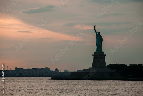 Silhouette of Statue of Liberty at beautiful sunset