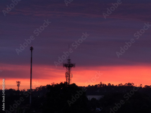 sunset, sky, power, electricity, tower, electric, sunrise, silhouette, energy, construction, pylon, industry, cloud, crane, high, orange, evening, building, sun, voltage, cable, industrial, city, line, cloud