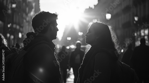 silhouette, city, people, walking, night, street light, black-and-white, shadow, urban, street, darkness, couple, backlit, monochrome, evening, night time, outdoors, motion, metropolitan, atmosphere, contrast, moody, blurred, city landscape, mysterious, dramatic, urban life, duet, alley, scene, silhouette, path, reflective, timeless, light, shadow, vintage, peaceful, quiet, greyscale, modern, classic, perspective