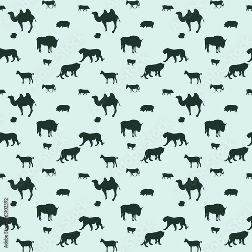 Silhouette of Wild and Domestic Animals. Seamless Pattern. Vecto