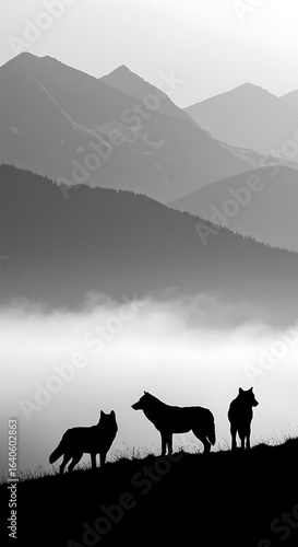 wolf, silhouette, man, mountain, landscape, mist, nature, hiking, wildlife, forest, hiker, animal, adventure, scenic, travel, exploration, moody, cliff, horizon, highland, fog, pack, twilight, atmosphere, dawn, scenery, outdoors, terrain, environment, sunrise, wilderness, freedom, scene, explore, photo, peaceful, solitude, camping, summit
