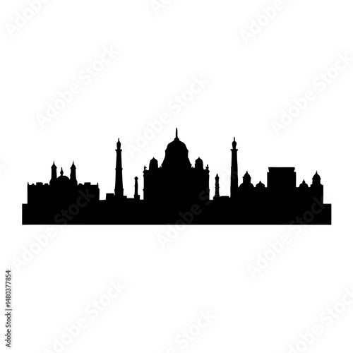 silhouette, skyline, city landscape, city, building, urban, architecture, travel, landmark, tour tourism, view, india, asia, dome, tower, structure, black, white, design, illustration, graphic, art, background, icon, symbol, shape, outline, minimalist, style, modern, building, town, destination, sightseeing, culture, heritage, historical, famous, place, earth, country, sight, vacation, trip, journey