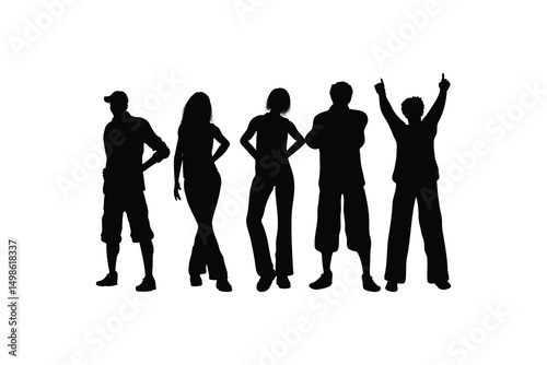 Silhouette Vector Collection of Standing Men and Women in Diverse Poses with Raised Hands and Side Profiles Business Team Concept Isolated on White Background