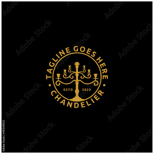 Silhouette Vintage Golden Metal Chandelier Emblem Label Stamp Design