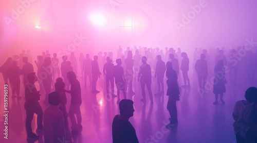 crowd, people, silhouette, party, event, concert, festival, dance, music, light, purple, pink, haze, fog, smoke, atmosphere, ambience, energy, vibrant, colourful, background, texture, abstract, blurry, indistinct, gathering, social, togetherness, massa, group, anonymous, figure, shape, shadow, night, indoor, venue, space, room, illumination, glowing, bright, dim, spectacle, entertainment, performance, mysterious, magical, dreamy