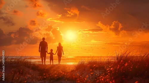 sunset, family, silhouette, horizon, beach, coastal, warm, glow, cinematic, impressionist, landscape, painting, tranquil, serene, peaceful, scenic, romantic, idylli, nature, environment, evening, dusk, twilight, sky, cloud, sea, ocean, shore, sand, grass, moody, atmospheric, dramatic, beautiful, stunning, bonding, togetherness, connection, leisure, relaxation, lifestyle, adventure, contemplation, beauty, mood, atmosphere