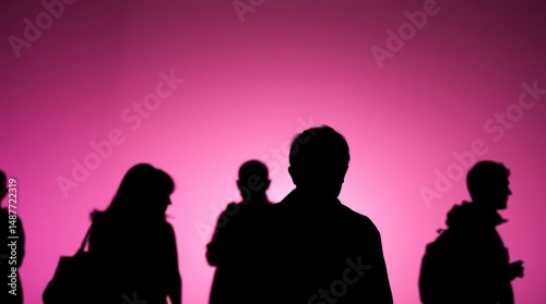 silhouette, people, pink, background, abstract, shadow, modern, artistic, contemporary, design, minimalism, style, fashion, movement, crowd, group, human, figure, dark, light, colours, contrast, shape, form, composition, texture, space, depth, line, visual, creative, graphic, stylish, urban, silhouette, backlit, mood, elegant, sophisticated, mystery, individual, sex, age, diversity, presence, absence, ambiguity, meeting