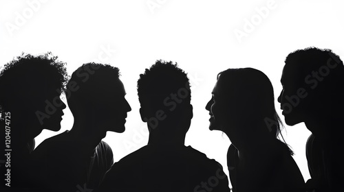 silhouette, figure, people, group, conversation, talking, close, proximity, black, white, background, contrast, shadow, profile, face, hair, friends, intimacy, connection, human relationships, communication, interaction, bonding, community, togetherness, oneness, support, discussion, sharing, listening, understanding, empathy, expression, emotion, human, social, gathering, meeting, moment, image, photo, art, visual, style, monochrome