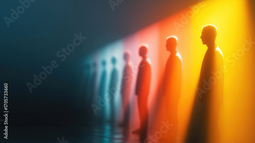 silhouette, figure, gradient, light, abstract, art, shadow, colours, illumination, mood, concept, depth, line, contrast, standing, design, creativity, visual, inspiration, reflections, aethereal, modern, aesthetic, calm, environment, mystery, solitude, composition, shape