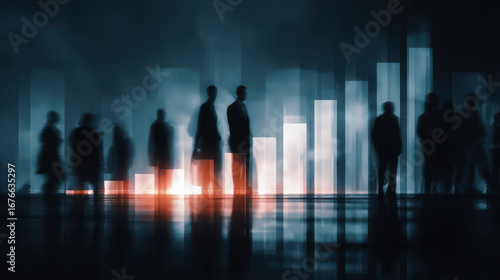 silhouette, figure, bar, chart, glowing, growth, business, finance, corporate, team, abstract, futuristic, datum, technology, digital, economy, success, progress, innovation, strategy, planning, shadow, light, contrast, modern, conceptual, teamwork, collaboration, statistic, information, analysis, market, trend, development, vision, leadership, insight, performance, achievement, potential, opportunity, rising