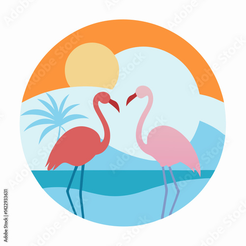 flamingo, silhouetted, pastel, sun, circle, t-shirt, design, retro, vintage, beach, tropical, sky, scene, icon, graphic, style, nature, illustration, posh, gradient