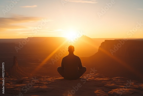 silhouette, man, meditation, yoga, sunset, golden hour, mountain, landscape, cliff, nature, peaceful, tranquil, serene, spiritual, orange, sky, rock, sun, outdoors, calm, zen, mindfulness, inspiration, golden light, evening