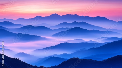 Silhouetted Mountain Ranges Bathed in Pink and Blue Hues at Dawn