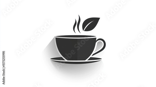 beverage, tea, cup, leaf, steam, shadow, white, drink, hot, herbal, aroma, relax, breakfast, morning, cosy, warm, comfort, refreshing, energy, natural, organic, healthy, wellness, calm, serene, peaceful, simple, modern, elegant, design, icon, graphic, vector, minimal, isolated, outline, dark, black, shape, silhouette, flat, clean, ceramic, saucer, handle, light, vapour