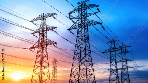 power, line, sunset, energy, electricity, infrastructure, technology, landscape, silhouette, wire, pole, horizon, nature, sky, colours, connection, transport, communication, utility, industrial, environment, renewable, transmission, grid, dusk, twilight, modern, design, urban, scene, generation, system, engineering, cable, network, distribution, voltage, safety, construction, maintenance, rural, city landscape, development, resource, efficiency, sustainability, innovation