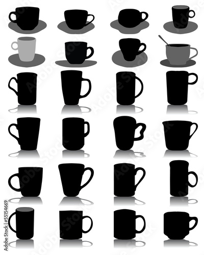 cup, vector, background, beverage, hot drink, illustration, silhouette, drink, tea, glasses, black, breakfast, ceramic, china, contour, design, domestic, drawing, graphic, image, isolated, kitchen, liquid, morning, mug, object, painting, crayons, plate, porcelain, pottery, refreshment, saucer, set, swirl, white