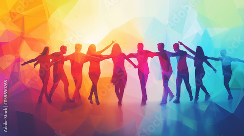 silhouette, dance, vibrant, colourful, atmosphere, energetic, cloud, people, movement, joyful, dynamic, gradient, artistic, painterly, expressive, illusion, fluid, bright, festive, abstract, harmonious, creative, celebration, splash, motion, texture, balance, oneness, rhythmic, intense, many-coloured, saturation, fusion, high-coloured, exuberant, visual, design, composition, aethereal, radiant, synchronized, kaleidoscope, dreamy