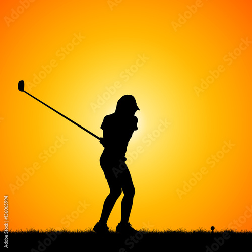 golf, golfer, silhouette, sunset, lady, sun, swing, sport, club, course, summer, shadow, background, vacation, relax, play, sunrise, hole, target, tee, player, closeup, light, colourful, woman, yellow, orange