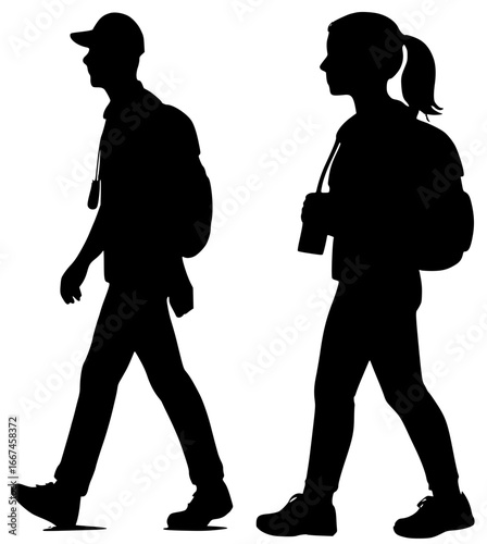 silhouette, black, white background, man, woman, walking, casual attire, profile, outline, shape, figure, pedestrian, attire, posture, movement, lifestyle, fashion, sex, modern, simple, minimal, monochrome, casual clothes, half face, shadow, casual attire, motion, activewear, leisure, urban, environment