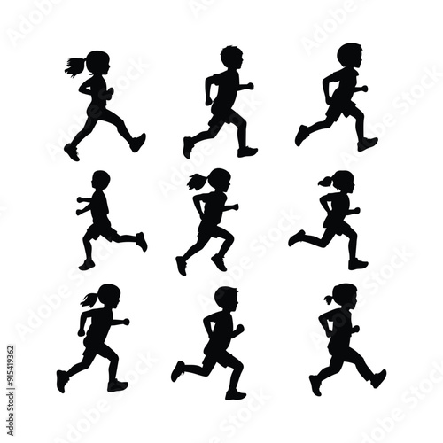 Silhouettes of a running children vector illustration, silhouettes of a running children vector illustration, Little children running silhouette vector illustration