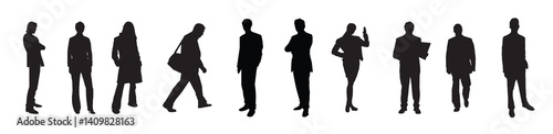 Silhouettes of business men and women