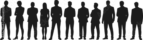 silhouette, people, business, team, group, office, staff, professional, corporate, vector, standing, co-worker, colleague, outline, manpower