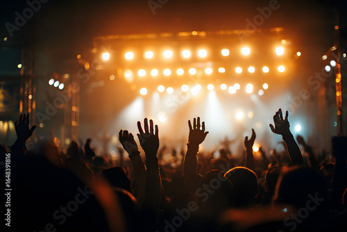 light, silhouette, stage, crowd, concert, nightclub, excitement, festive, audience, fan, music, performance, live, party, night, show, venue, festival, spotlight, culture, rave, event, gathering, social, rock, cheering, spectator, celebration, people, dancing, atmosphere, vibe, entertainment, standing, pop, fun