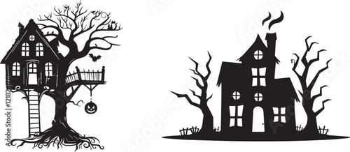 halloween, house, silhouette, vector, night, cartoon, illustration, horror, holiday, haunted, scarey, skittish, dark, castle, architecture, mediaeval, building, design, home, creepy, autumn, art, graphic, drawing, symbol, city, moon, sky, town, vignetting, vintage, landscape, tree, old, black, bat