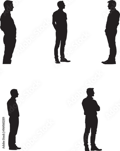 man, people, standing, backview, vector, cut-out, full-length, male, half face, white background, front view, illustration, young men, computer graphic, casual clothes, modern, vertical, clip art, black-and-white, silhouette, group, person, young, business, isolated, male, human, black, set, businessman, art, work, teamwork, background, team, figure, design, image, professional, graphic, collection