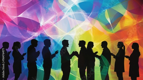 silhouette, interaction, colourful, abstract, people, communication, teamwork, diversity, oneness, connection, celebration, networking, conversation, partnership, engagement, creativity, design, art, expression, culture, relationship, social, harmony, community, influence, motivation, inspiration, collaboration, support, professional, growth, success, idea, innovation, technology, visual, background, pattern, shape, light, energy, movement, emotion, style, representation, dynamic, aesthetic, beauty, graphic