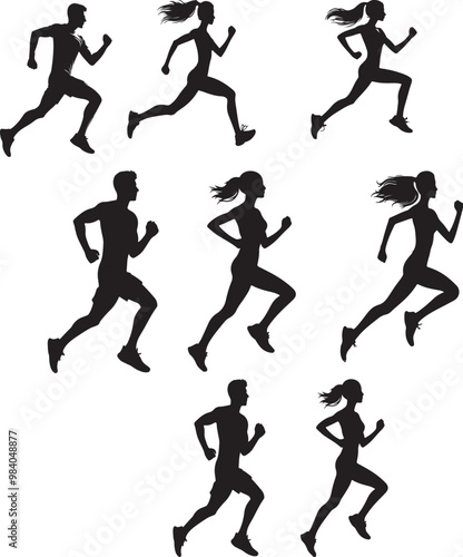 silhouettes of people running