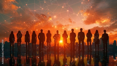 silhouette, people, racked, row, vibrant, sunset, sky, image, represent, teamwork, synergy, cohesion, community, resolve, inspiration, energy, achievement, commitment, optimism, camaraderie, empathy, connection, conformity, oneness, happiness, momentum, friendship, spirit, empowerment, alliance
