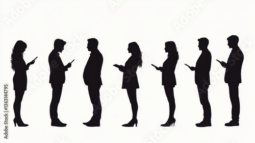 silhouette, people, smartphone, mobile, standing, communication, device, modern, technology, social, addiction, digital, connection, minimal, flat, abstract, phone, youth, crowd, contraption, group, lifestyle, texting, online, virtual, chat, network, media, profile, smart, user, culture, interaction, concept, posture, distraction, tech, contemporary