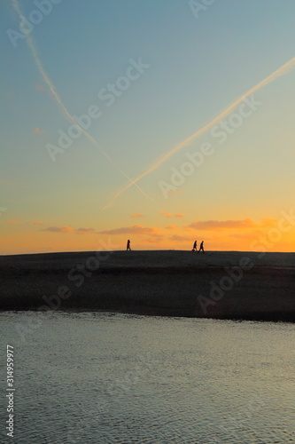 silhouette, people, sunset, horizon, sun, sunlight, sunny, weather, british, england, devon, group, walk, leisure, travel, tour tourism, holiday maker, sky, lifestyle, colourful