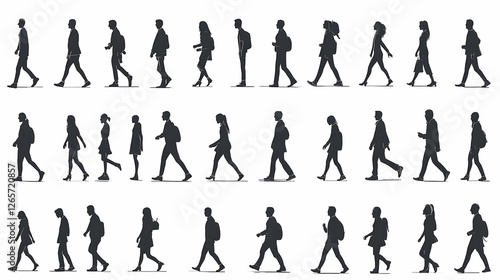 Silhouettes of people walking, city street background, diverse crowd, stock photo