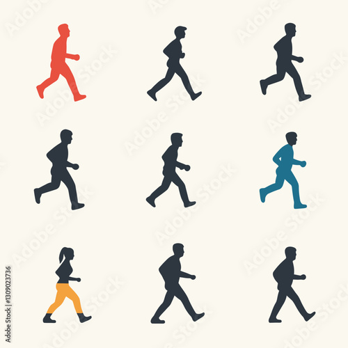 runner, running, silhouette, silhouette, people, man, woman, exercise, fitness, health, well-being, sport, training, active, motion, movement, jog, jogging, cardio, strength, speed, endurance, healthy lifestyle, vector, illustration, graphic, design, conceptual, abstract, simple, modern, minimalist, flat, colours, shape, set, collection, group, isolated, athlete, athletic, track, marathon, cross country, run, competition, fit
