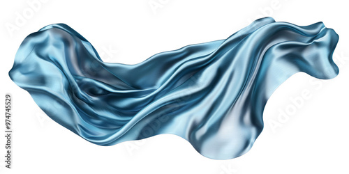 Silk satin cloth fabric with smooth folds, flying on transparent background,