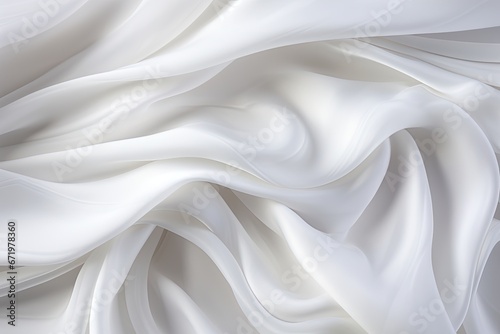 Silken Surf: Abstract Background of Soft Waves in White Fabric